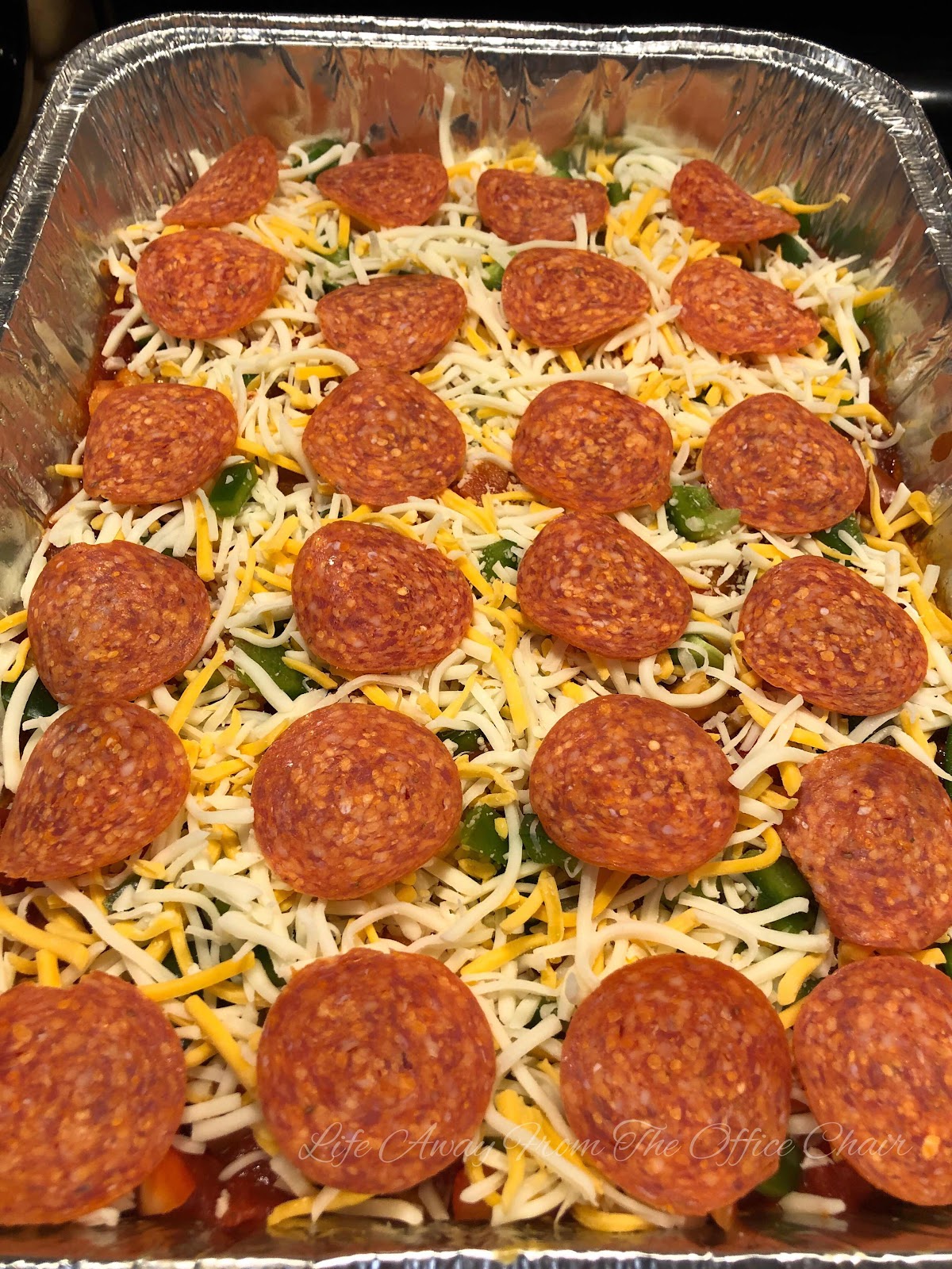 I needed a dish to make and share. I usually will do some kind of casserole but this time I decided on a Pizza Pasta. I guess you could call it a pizza casserole.
